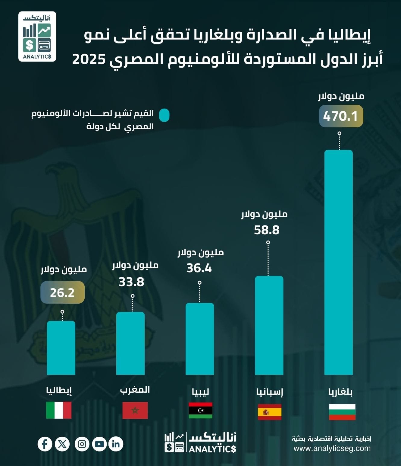 صادرات الألومنيوم المصري تواصل التوسع عالميًا في 2025.