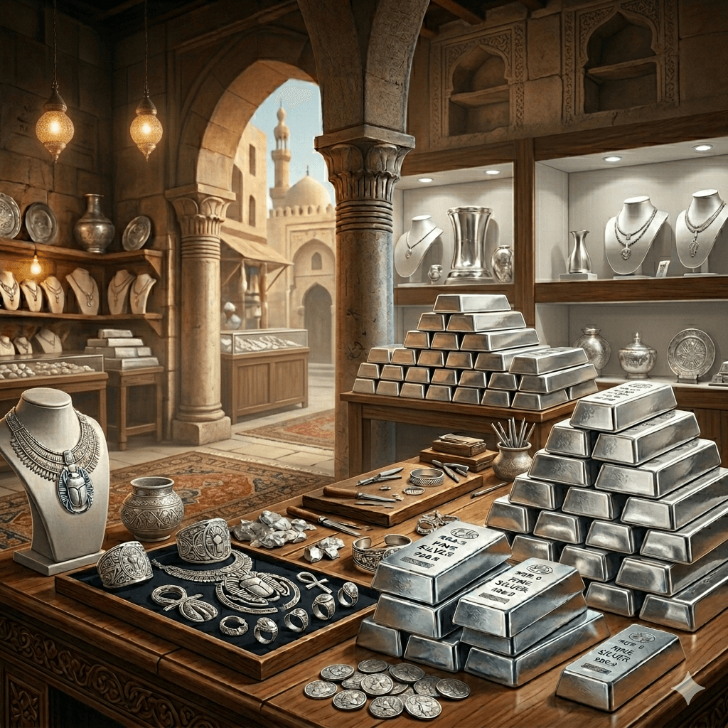 أسعار الفضة تستقر محلياً بمصر وتهبط عالمياً لـ 75 دولاراً رغم تراجع الدولار