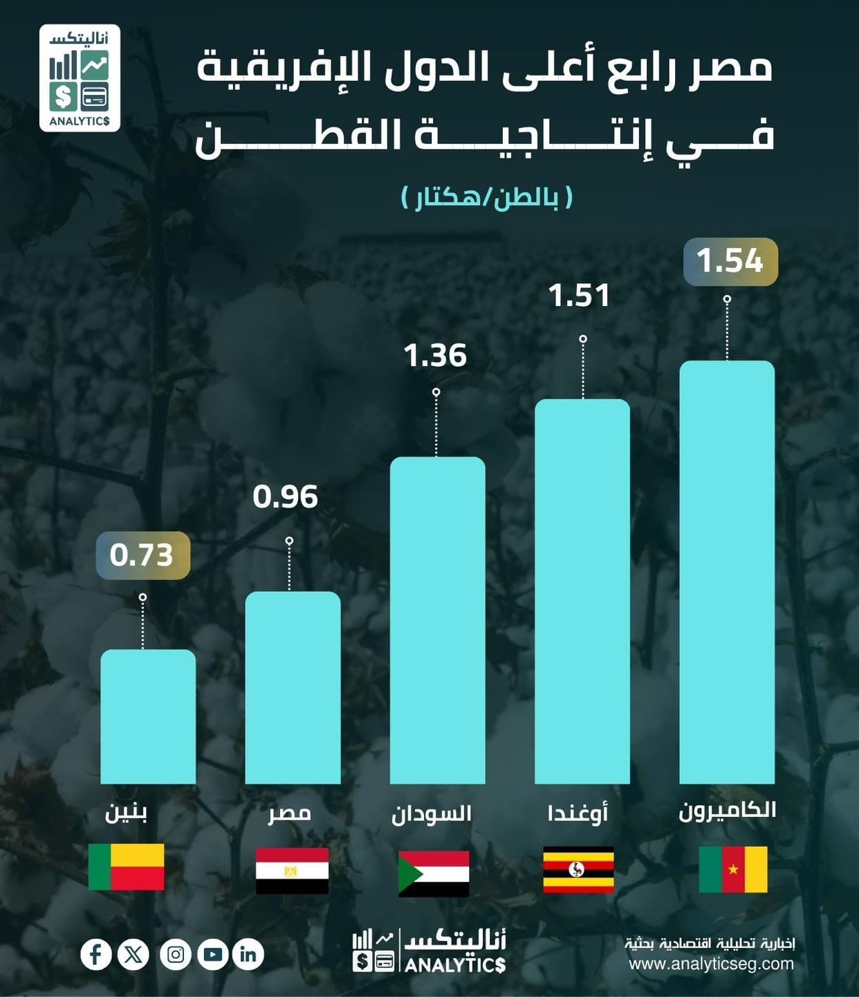 مصر تحتل المركز الرابع إفريقيًا في إنتاجية القطن .