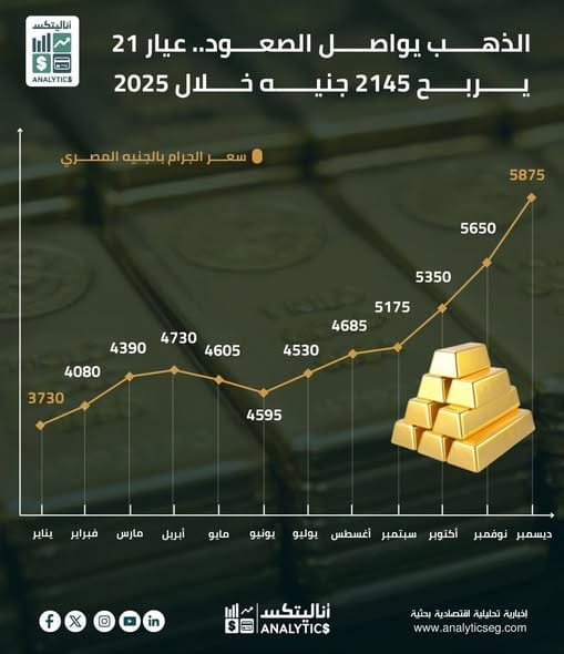 سعر جرام الذهب عيار 21 في مصر سجل صعودًا ملحوظًا خلال 2025.