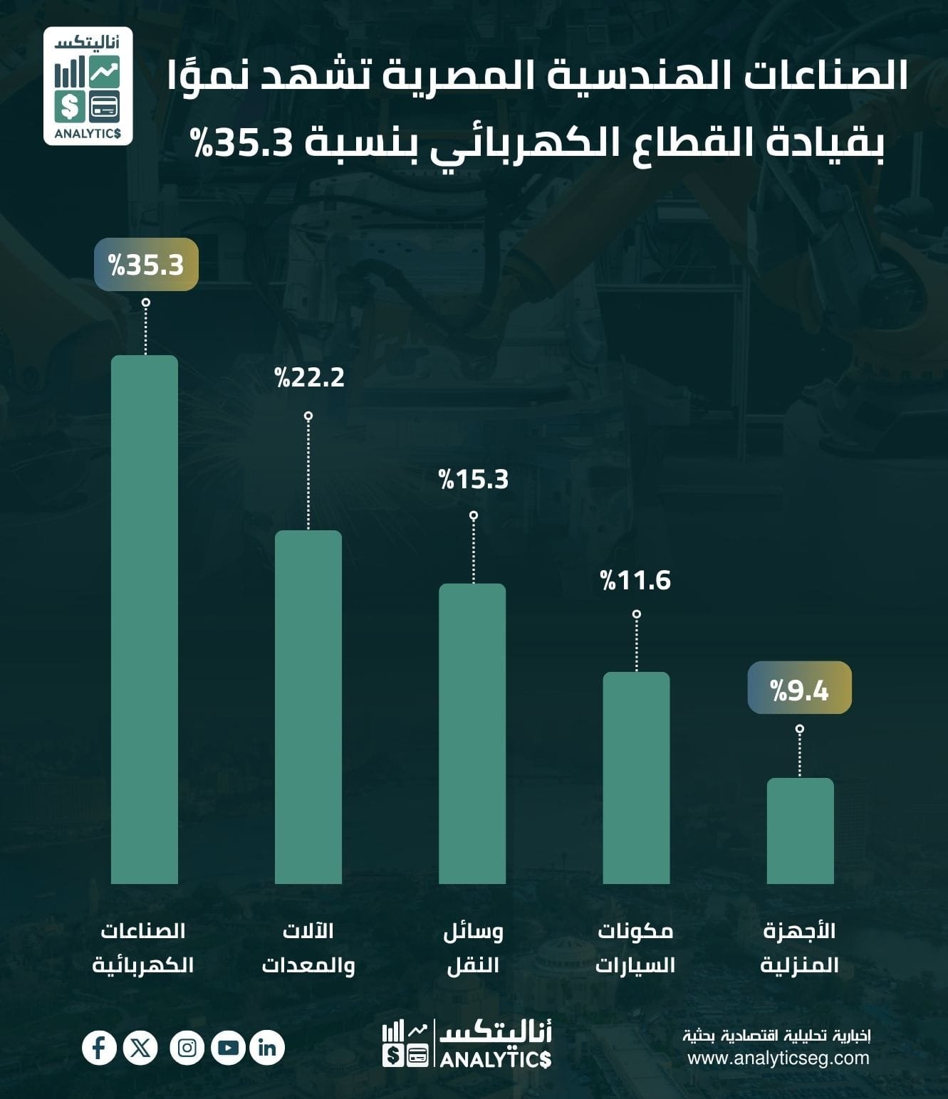 الصناعات الهندسية المصرية تتقدم بخطى ثابتة قطاع الكهرباء يتصدر النمو بنسبة 35.3%، علامة على قوة الصناعة المحلية وتوسع الصادرات.