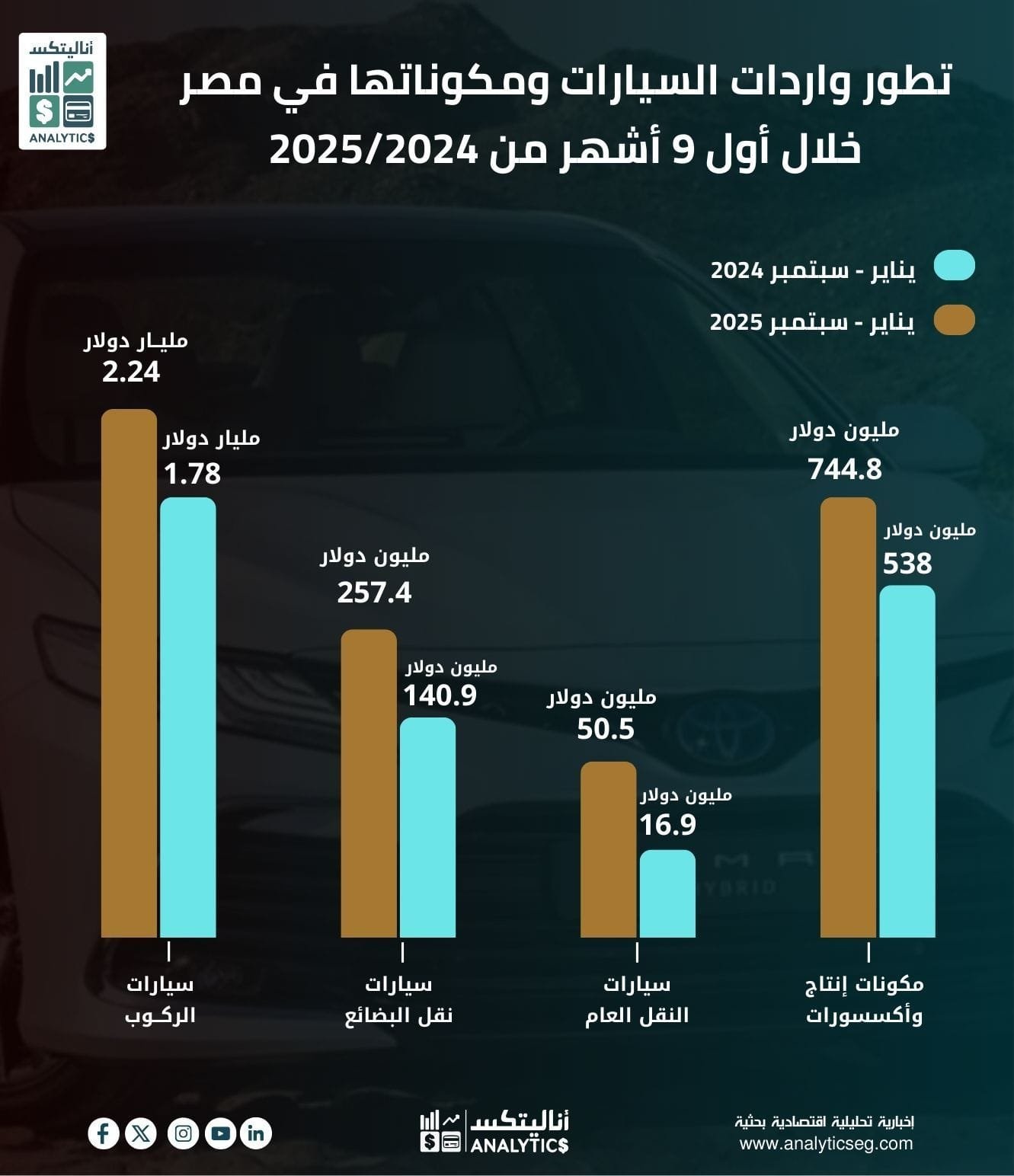 Home»سيارات ونقل»تطور واردات السيارات ومكوناتها في مصر خلال أول 9 أشهر من 2025/2024