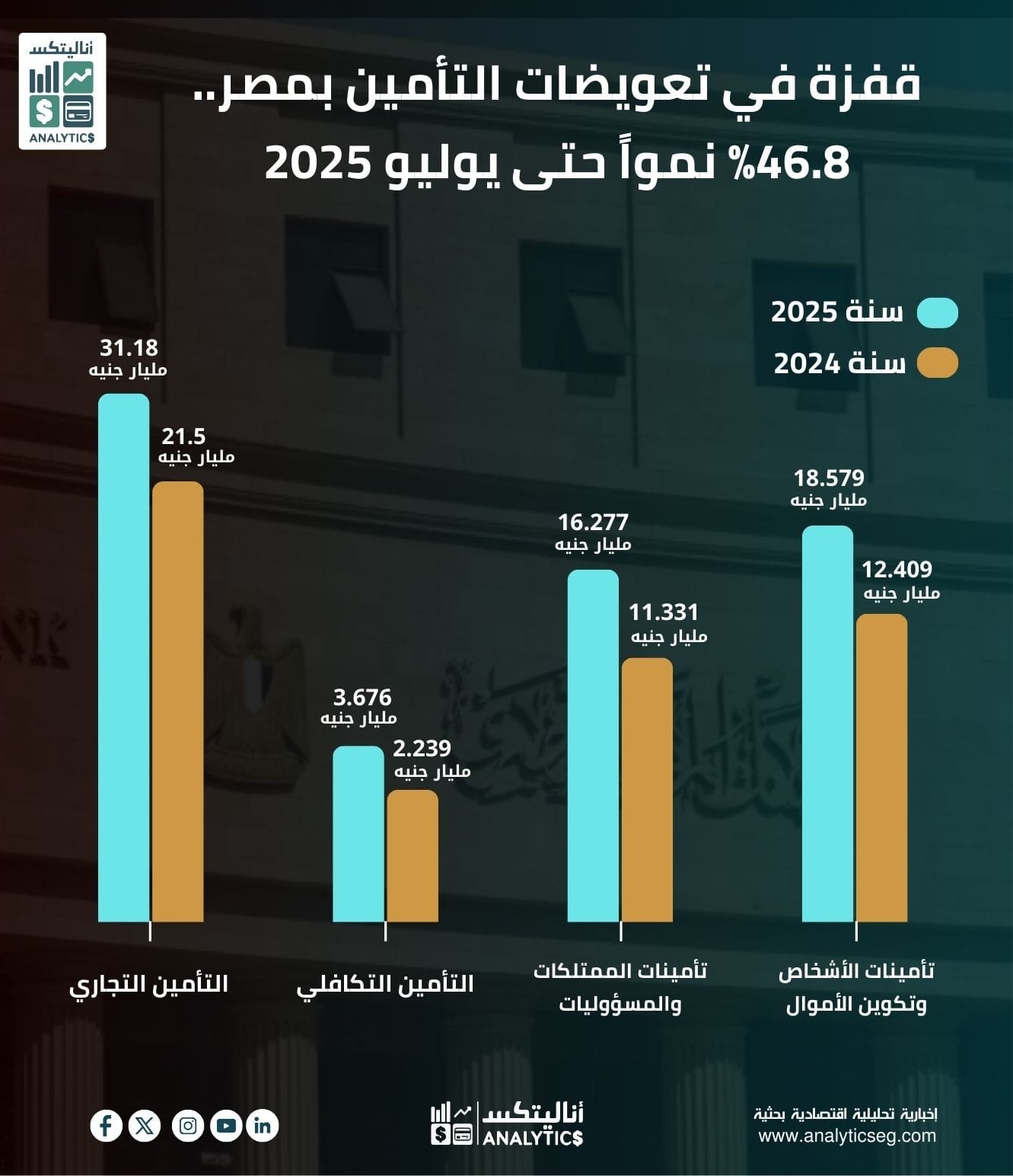 •  التأمين التجاري يتصدر بـ 31.18 مليار جنيه